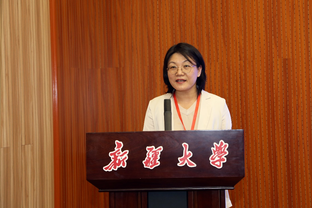 新疆大学新闻与传播学院党委副书记、院长金玉萍教授在开幕式致辞