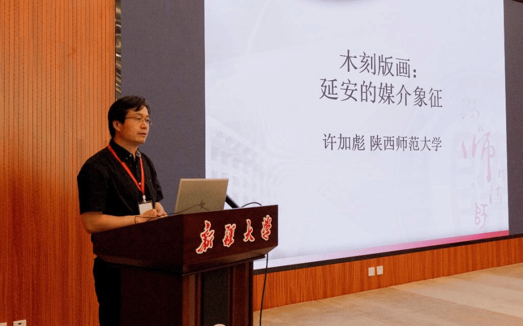 在主题演讲上半场,复旦大学新闻学院特聘教授、复旦大学媒介管理研究所所长、《新闻大学》常务副主编朱春阳教授,作了题为《主流媒体参与共识构建的路径创新》的学术报告;新疆大学党委常委、宣传部部长、新疆大学中亚研究院院长张允教授,作了题为《以史为鉴、开创未来,铸牢中华民族共同体意识——基于古代西域驿站历史文化资源开发与利用的研究》的学术报告;陕西师范大学新闻与传播学院院长许加彪教授,作了题为《木刻版画:延安的媒介表征》的学术报告。