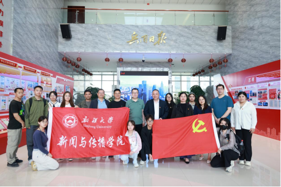 传媒经营管理系党支部书记伊力亚尔·麦提尼亚孜组织传媒系5位教师代表和新闻传播学院大三的10位党员学生代表,前往新疆兵团日报社,学习兵团日报社传承红色基因经验,实地参观了新疆兵团日报社新闻大厦,结合媒体融合,讲好兵团故事和大学生实习、就业等问题开展了探讨和交流。