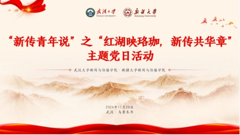 为进一步加强对大学生的政治引领和思想引导,全面贯彻落实党的二十届三中全会精神,进一步凝聚思想共识、强化使命担当,推进高校学生支部党建和科研工作扎实有效的结合。11月29日下午新疆大学新闻与传播学院与武汉大学新闻与传播学院联合开展党建品牌活动——“新传青年说”之“红湖映珞珈,新传共华章”主题党日活动。我院党委书记吐尔逊·托合提、武汉大学新闻与传播学院党委副书记王怀民及两院学生党支部党员代表参加此次活动。
