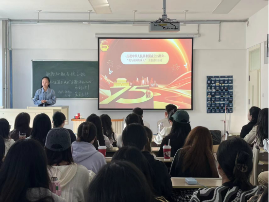 为热烈庆祝中华人民共和国成立75周年,弘扬爱国主义精神,引导广大青年共抒爱国情怀、共话祖国新貌、坚定理想信念、坚守初心使命,新闻与传播学院于2024年10月9日下午在12号教学楼组织各团支部开展“我与祖国共成长”主题团日活动,全院教师进班全程参与。